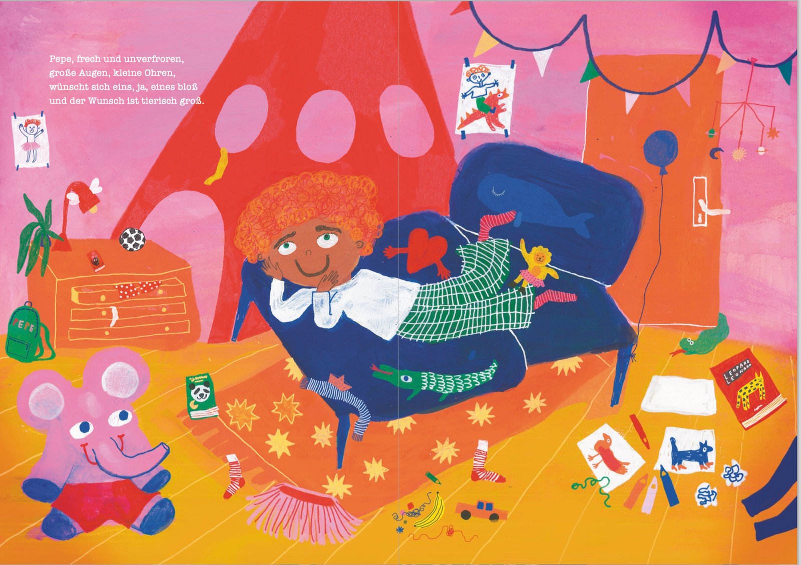 Pepe, Frech und unverfroren, Große Augen kleine Ohren, wünscht Sich eins, ja eines bloß und der Wunsch ist tierisch groß.